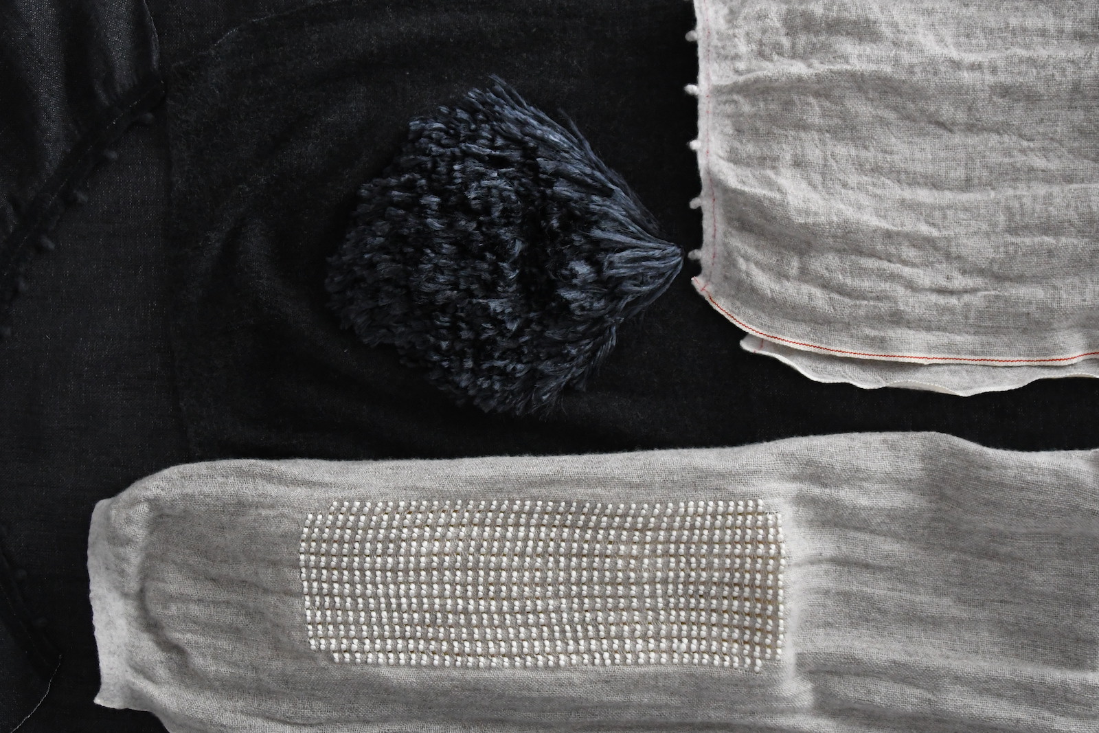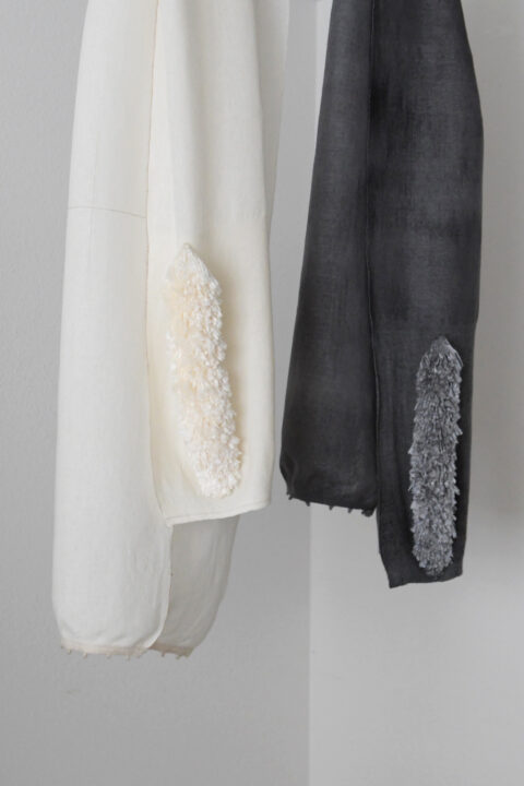 糸の特性と作家のイマジネーションが響きあって生まれる布。
