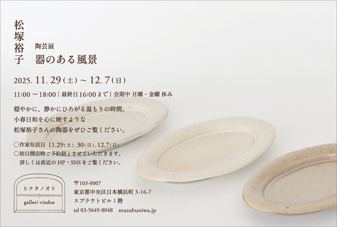小春日和を心に映すような松塚裕子さんの陶器をぜひご覧ください。