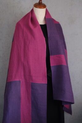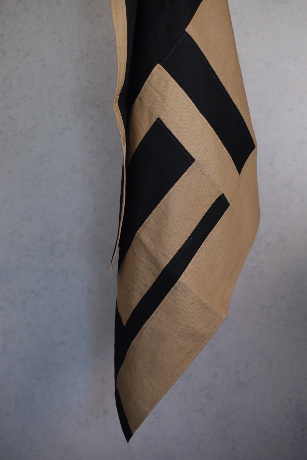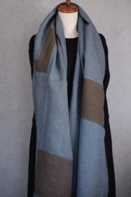 布と布のハーモニーと縫製が美しく、今も店内でお客様のお荷物の掛け布などとして活用させていただいています。