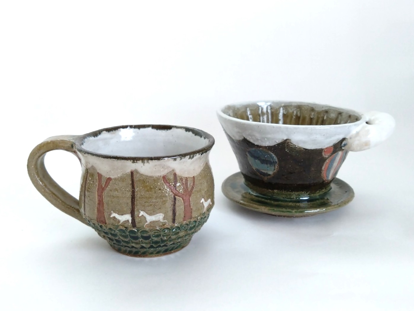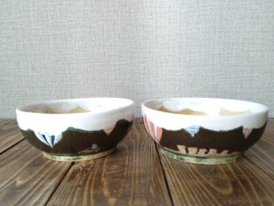 器は日常に気軽に使える大きさのお皿やカップですが、そこに絵付けを施し個性的なものに仕上げています。
