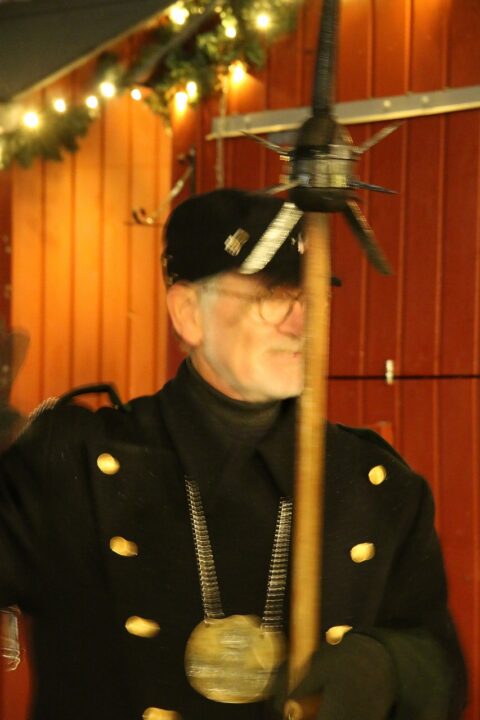 ピンぼけですが、今も続く見回り夜警のおじさまもいらして。