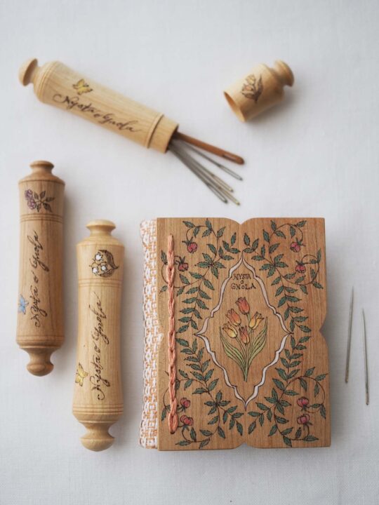 ニードルケース… 円筒状の木のケースは、毛糸のとじ針を入れるのに程良いサイズです。
