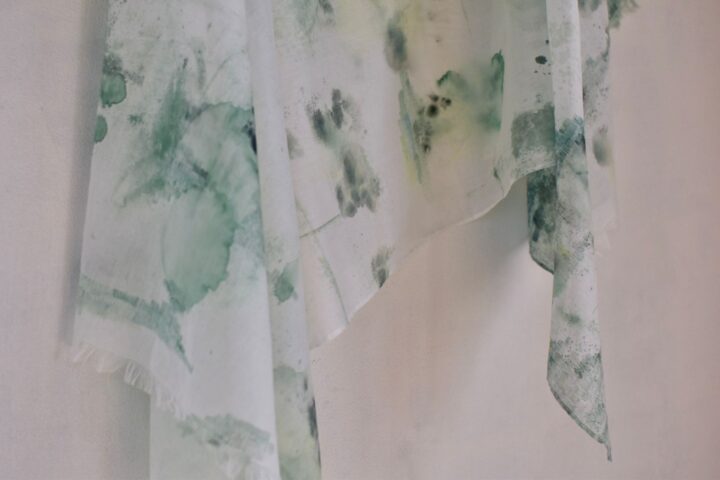 これらの作品に寄り添うかたちで、会期に向けて、日々の装いの中で自然に手に取っていただけるストールも、少しずつ染め重ねています。