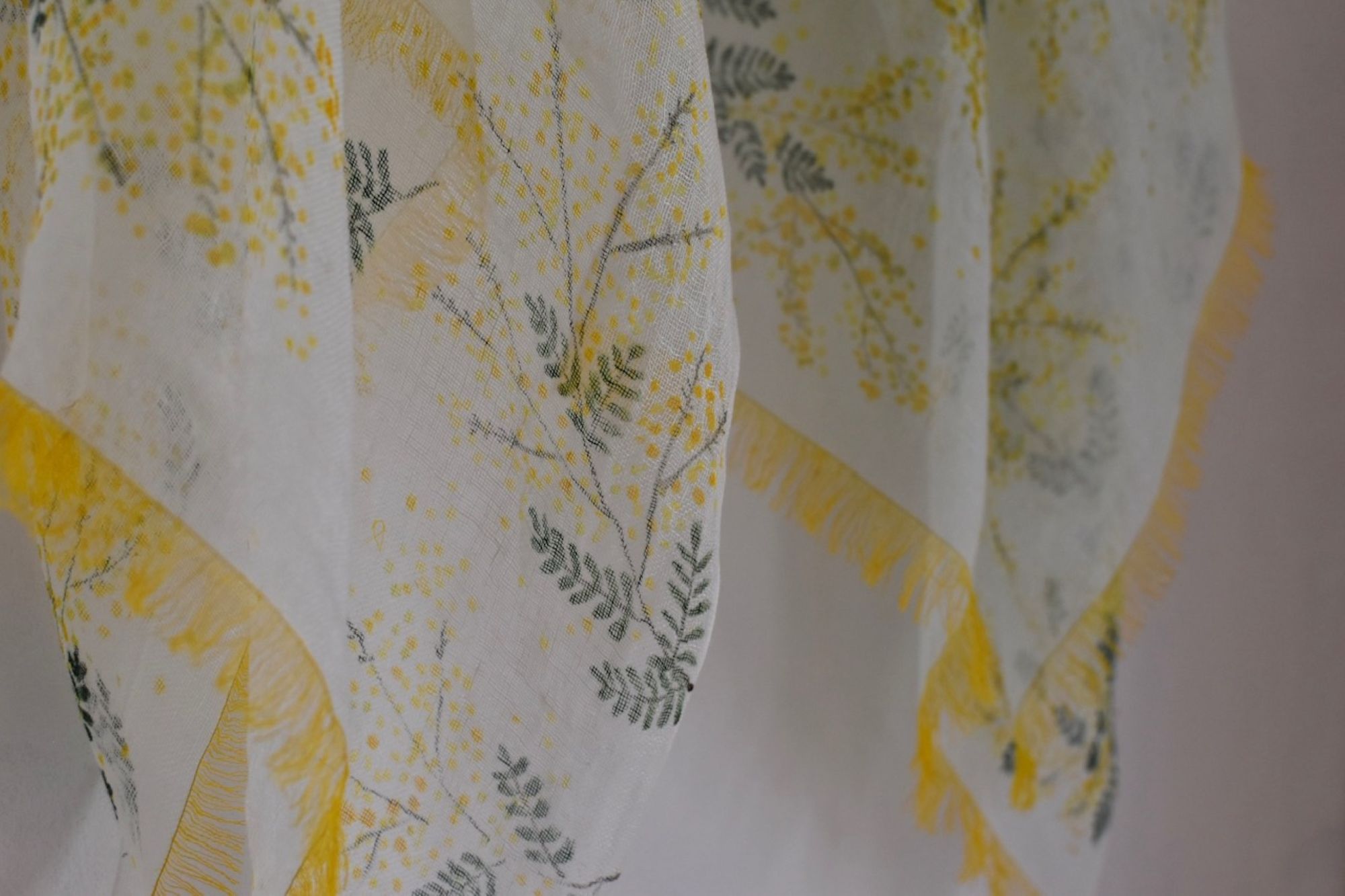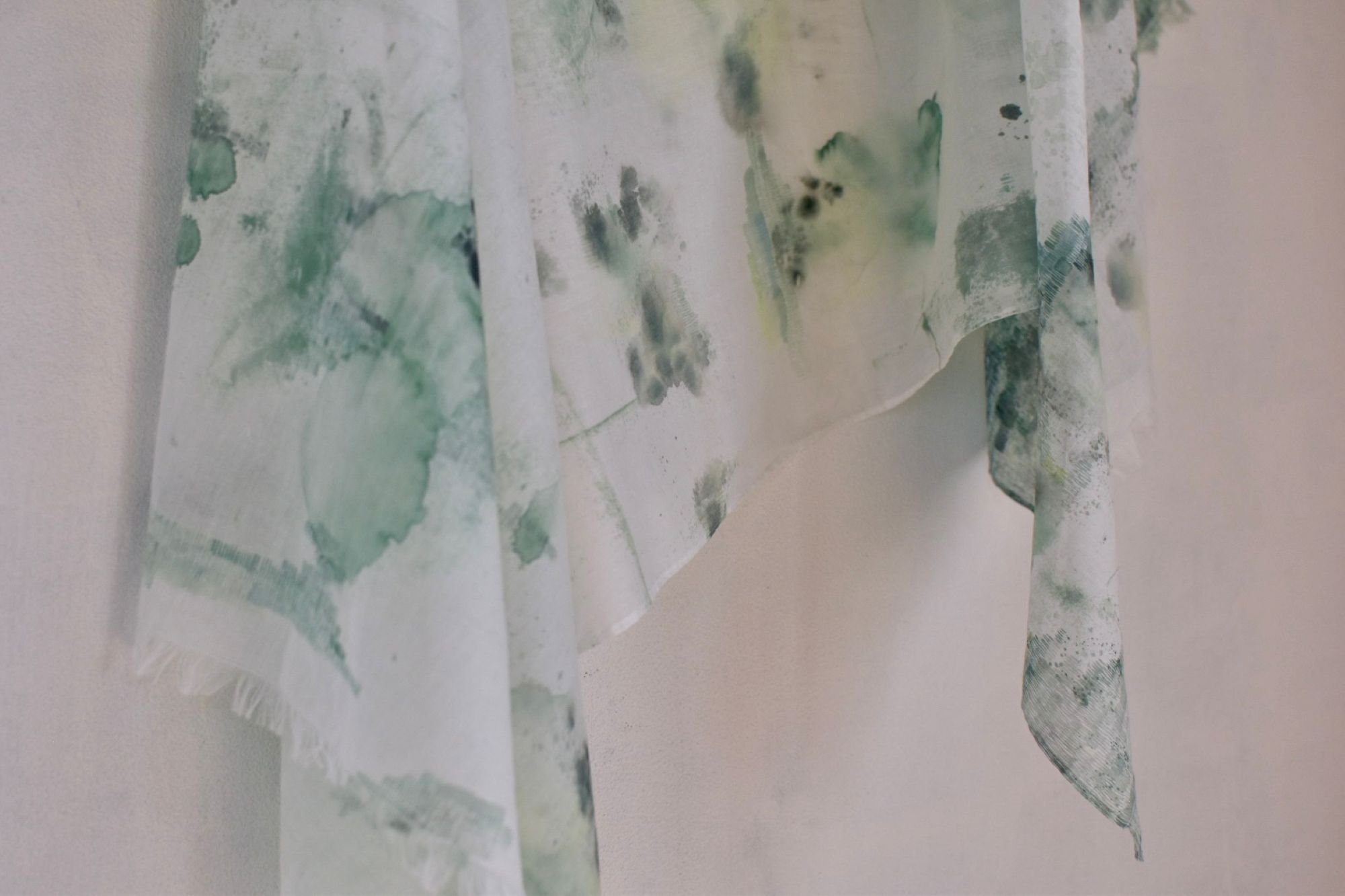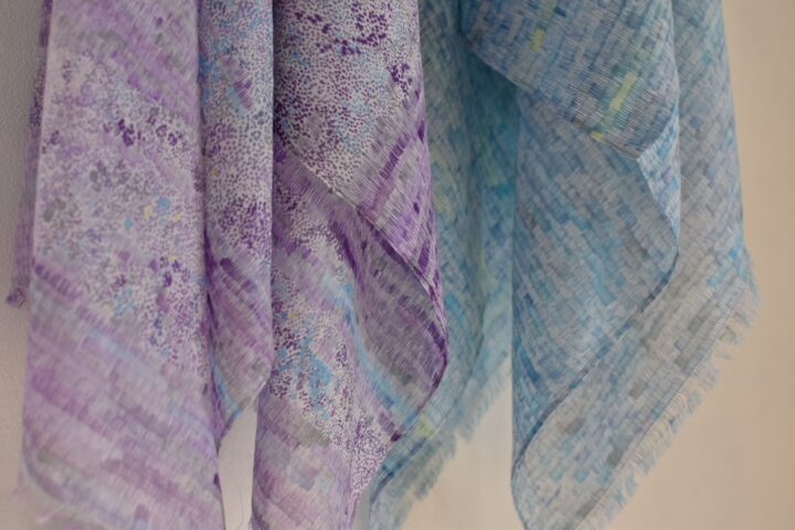 ストールは花柄を中心に、自然の中で心に残った曖昧な景色や、記憶の中に沈殿した情景をすくい取るような、抽象的な柄のストールも制作しました。