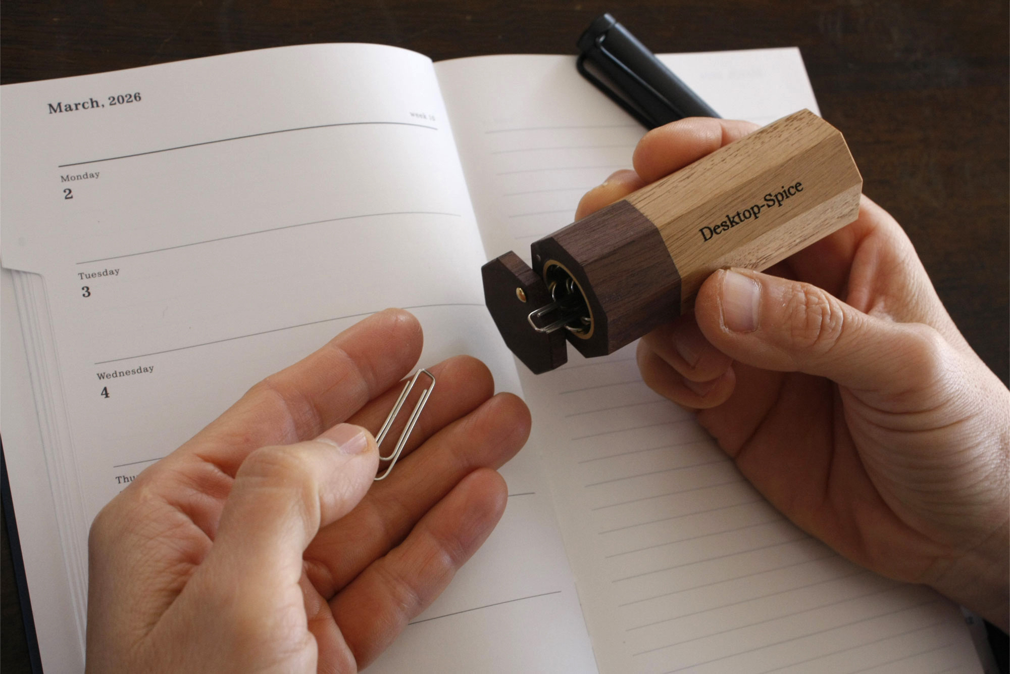 仕事柄、図面を多く引きクリップもよく使うのですが、スマートに収納でき、楽しく出せるケースが欲しいと考えた、「Desktop-Spice」